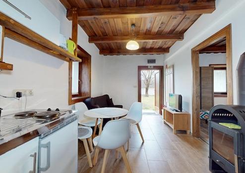 Ezen kívül az ingatlan két nádtetős, szalmabála falazatú apartmanházból és egy gondosan felújított, hagyományos búbos kemencével felszerelt pajtából áll. Az apartmanházak mindegyike két hálószobával, modern fürdőszobával és teljesen felszerelt konyhával rendelkezik. A pajta közösségi térként szolgál, tökéletes helyszínt biztosít összejövetelekhez, nagyobb eseményekhez.