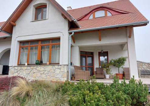 Zu verkaufen: Ein Einfamilienhaus mit Panoramablick auf den Plattensee, im Balaton-Felvidék-Stil erbaut und mit hohem Standard ausgestattet, in einer ruhigen Straße gelegen. Es diente als Kulisse für zahllose wundervolle Erinnerungen, Erlebnisse, Gelächter und Zusammenkünfte mit der Familie und Freunden. Das Einfamilienhaus wurde aus Porotherm 44 N+F-Ziegeln der Güteklasse 44 gebaut und befindet sich in Szentantalfa in der Kertalja-Straße 8, in einem städtischen Gebiet, auf einem 1404 m2 großen Grundstück. Es gibt Wasser, Strom und Gas. Die Kanalisation arbeitet mit einem geschlossenen Faulbehälter, der von der Gemeinde für 4.000 HUF pro Monat 20 Jahre lang betrieben und versorgt wird. Der Garten ist liebevoll angelegt und gepflegt, mit einem Steingarten, einem Gewürzgarten und ausgewachsener Vegetation (Leyland-Zypressen, Kiefern, verschiedene Lorbeerarten, Pampasgras, Lavendelbüsche, Rosenbüsche, Lilien, Tulpen, Narzissen, Pfingstrosen, Astern usw.), was für ausreichend Intimität sorgt und dafür, dass der gesamte Garten vom frühen Frühling bis zum späten Herbst in einem Meer aus Blüten erstrahlt. Der Garten wird über eine Sprinkleranlage bewässert. Zusätzlich zur Garage mit 1 Stellplatz gibt es auf dem Grundstück Parkmöglichkeiten für 3 Autos.
