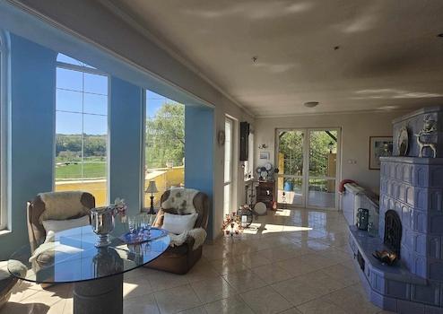 Ein speziell konzipiertes Familienvillengebäude für mehrere Generationen mit aufgeteilten Wohnbereichen, Doppelgarage, großzügigen überdachten Terrassen, Sauna und Gartenpool.