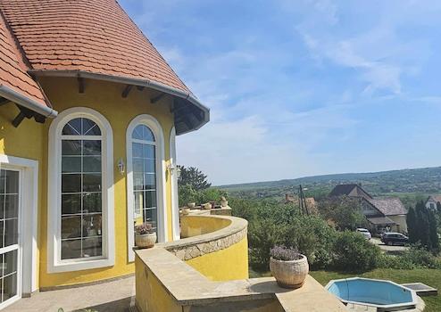 Kőröshegy csodálatos szőlőhegyi területén található ez az egyedi kialakítású villa épület. A házból, kertből nyíló kilátás, panoráma különleges. Az épületet a kerttel együtt reggeltől estig körbe süti a nap. Szomszédok távol esnek a telek határaitól.