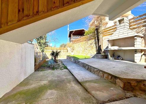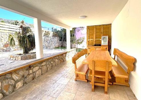 Auf der überdachten Terrasse, die einen herrlichen Blick auf das Meer bietet, kann man ruhige Momente genießen. Der Zugang zur Terrasse ist vom Wohnzimmer aus möglich, was die hervorragende Raumaufteilung noch unterstreicht. Auf der hinteren Terrasse gibt es einen Grill und einen großzügigen Bereich, der ideal für Familientreffen und Entspannung ist.