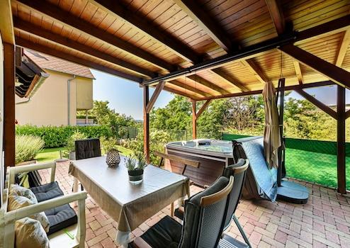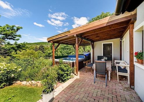 A teraszon jakuzzi és grillezési lehetőség várja, így a KIKAPCSOLÓDÁS is adott télen/nyáron. A tulajdonosok riasztórendszert építettek ki otthonuk védelmére.
