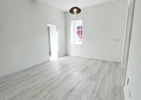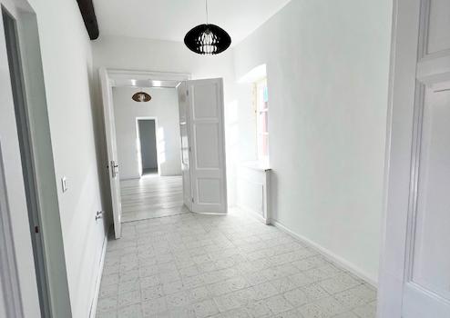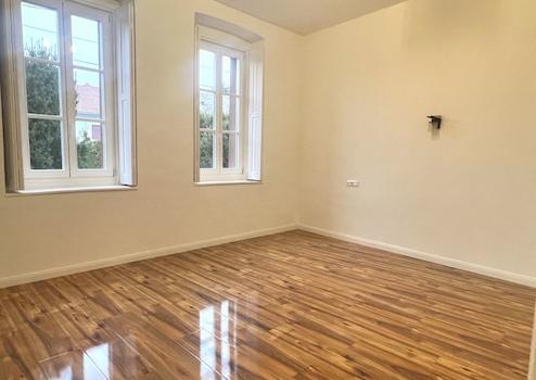 Das Haus verfügt über drei geräumige Zimmer, eines davon mit praktischer Garderobe. Die beeindruckende Deckenhöhe von 3,3 Metern sorgt nicht nur für Großzügigkeit in den Räumen, sondern auch für viel natürliches Licht, sodass in allen Bereichen des Hauses eine angenehme, helle Atmosphäre herrscht.