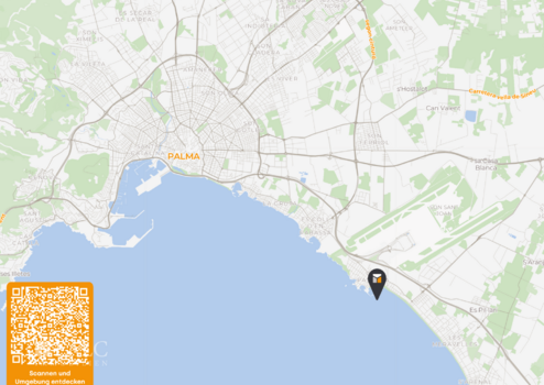 In unmittelbarer Nähe zur Immobilie finden sich zahlreiche Annehmlichkeiten, die den Alltag erleichtern. Ein bedeutender Punkt ist die hervorragende Anbindung an den öffentlichen Nahverkehr. Die nächste Bushaltestelle ist nur etwa 100 Meter entfernt, was eine schnelle Verbindung in die umliegenden Stadtteile und ins Zentrum von Palma ermöglicht. Für Reisende ist der internationale Flughafen Palma de Mallorca in ca. 5 Kilometern erreichbar, was die Lage besonders attraktiv für Vielreisende macht.
