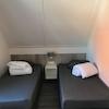 Dieses Schlafzimmer verfügt über 2 Einzelbetten, jedes mit einem eigenen Nachttisch. Es gibt auch einen Einbauschrank im Zimmer.