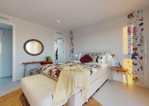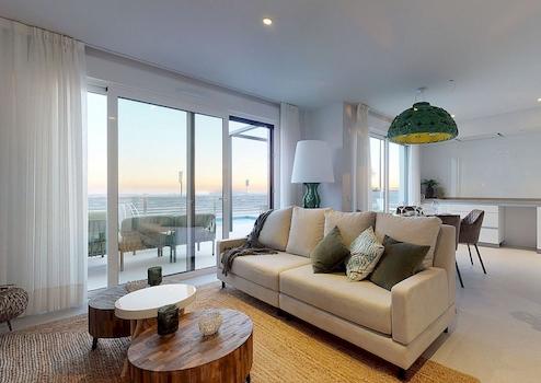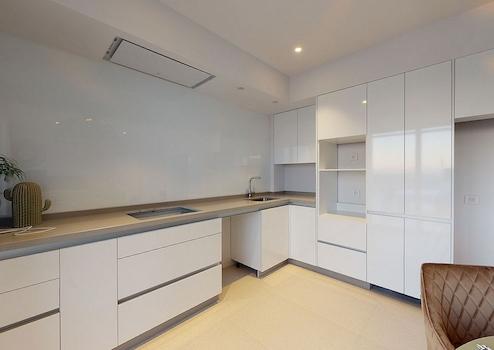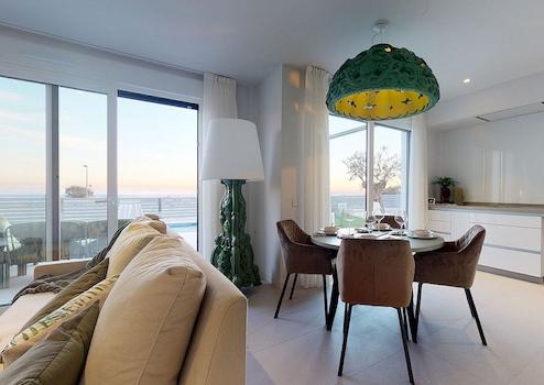 Sie haben ein großes Wohnzimmer mit moderner offener Küche und breite Fenster für die Verbindung mit dem Garten und großem Schwimmbad und für den Genuss des weiten Meerblicks.