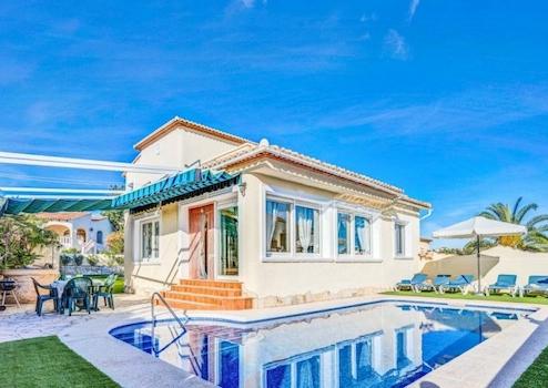 Ansprechende Villa mit 3 Schlafzimmern, 2 Bädern, Garage, Privatpool, Meerblick und Blick auf den Peñon de Ifach