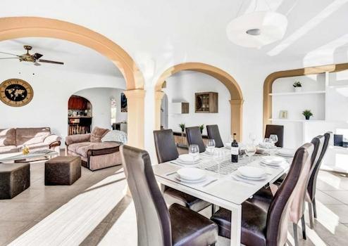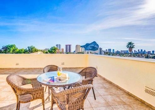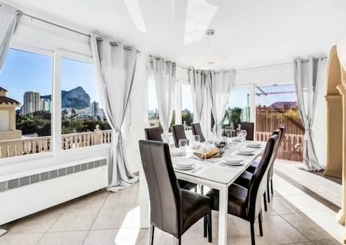 Diese schöne Villa ist nach Süden ausgerichtet, was eine gute Sonnenlage garantiert. Die Aussicht wird vom Peñon de Ifach dominiert und hier und da kann man das Meer sehen.