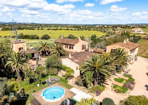Die Finca ist um ein stilvolles Atrium herum angeordnet und umfasst drei separate Häuser mit verschiedenen Wohneinheiten. Die großzügigen Räumlichkeiten bieten vielseitige Nutzungsmöglichkeiten und sind teilweise mit Zimmern en Suite ausgestattet.