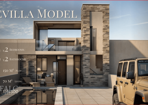 Villa **Sevilla** – ein modernes 70 m² Zuhause mit 2 Schlafzimmern, 2 Bädern, Solarium, Pool, Stellplatz und Solarpanele 15,50m² - 186.300 EUR