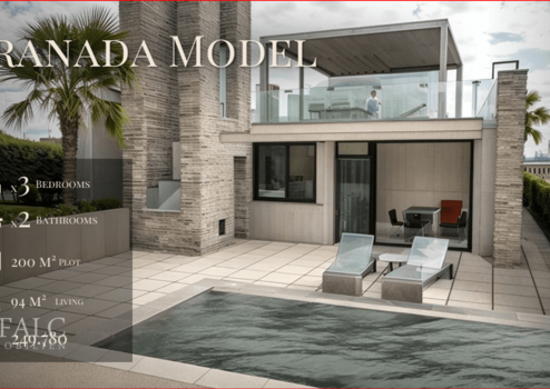 Villa **Granada** überzeugt mit 94 m², 3 Schlafzimmer, 2 Bäder, Solarium, Pool, Stellplatz und Solarpanele 17,60m² - 294.780 EUR