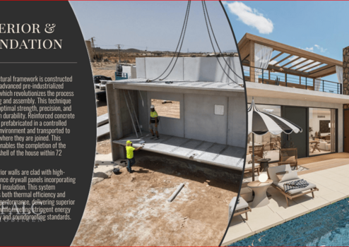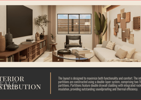 Der Grundriss ist so gestaltet, dass er sowohl die Funktionalität als auch den Komfort maximiert. Die inneren Trennwände bestehen aus einem zweischichtigen System, das aus zwei 10 cm Trennwänden. Die Trennwände haben eine doppelte Trockenbauverkleidung mit integrierter Steinwolle Isolierung, die eine hervorragende Schalldämmung und thermische Effizienz bietet.