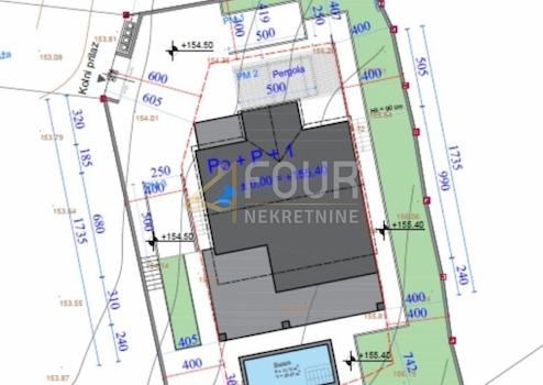 Das Projekt sieht den Bau eines Hauses (EG+F+1) mit einer Gesamtfläche von 1080 x 1395 m² vor.