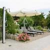 Das zweite Haus misst 60 m² und ist ebenfalls als eigenständige Wohnung gestaltet. Das Erdgeschoss verfügt über eine Küche, ein Badezimmer und einen Abstellraum, während sich im Obergeschoss ein gemütliches Wohnzimmer mit Balkon und ein Schlafzimmer befinden. Zusätzlich gibt es zwei Garagen sowie eine charmante Sommerküche mit Holzbalken und Kamin – ideal zum Genießen des traditionellen istrischen Ambientes.