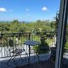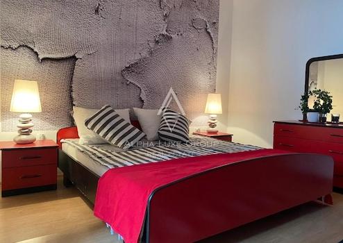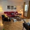 Im Obergeschoss befindet sich die zweite Wohnung, bestehend aus einem Flur, drei Schlafzimmern – eines davon mit eigenem Bad – einem zusätzlichen Badezimmer sowie einer offenen Küche mit Ess- und Wohnbereich, der auf einen Balkon mit herrlichem Bergblick führt.