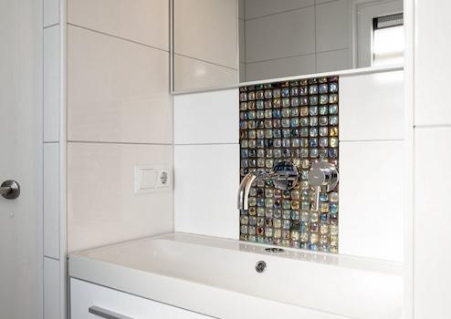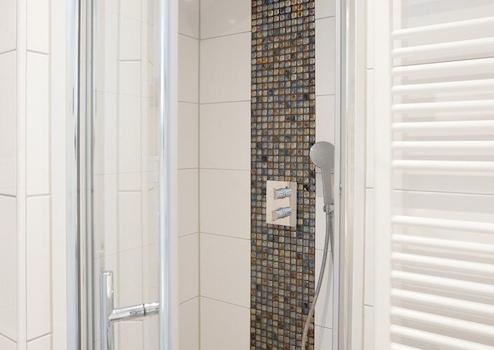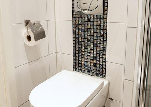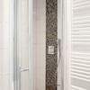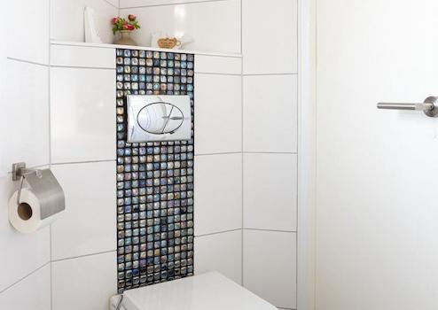 Außerdem gibt es ein zweites Badezimmer, das ebenfalls mit einer ebenerdigen Dusche, Waschbecken und Toilette ausgestattet ist.