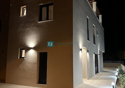 Das Gebäude wurde mit hochwertigen Materialien und nach den neuesten Baustandards gebaut. Zur Ausstattung gehören: Sicherheitstüren, ALU-Hebe-Schiebewände mit elektrisch gesteuerten Jalousien, Moskitonetze, Glaszäune, elektrische Fußbodenheizung in den Bädern, Küche, Wohnzimmer und Esszimmer, jedes Zimmer verfügt über Klimaanlage und TV/SAT-Anschluss. Warmwasser wird über einen Boiler im Lagerraum erhitzt und ist für die Videoüberwachung für zwei externe Kameras vorbereitet. Bei den Treppen handelt es sich um freitragende (schwebende) Stahlkonstruktionen mit Holzverkleidung und einem Geländer aus Stahlstangen in der Farbe Anthrazit. Im Hof ​​gibt es einen Swimmingpool mit den Maßen 6,4 x 3,7 m, ausgestattet mit Keramikfliesen und angenehmer Beleuchtung. Bis auf den begrünten Teil des Hofes sind die Umgebung und der Parkplatz mit Betonpflastersteinen gepflastert.
