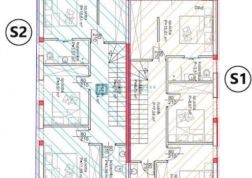 Das Haus S1 mit einer Gesamtnutzfläche von 188,68 m2 ist ein zweistöckiges Gebäude mit drei Etagen: Erdgeschoss + 1. Stock + 2. Stock. Einer der größten Vorteile dieser Immobilie besteht darin, dass sie für den privaten Gebrauch konzipiert wurde und großen Wert auf alle Details gelegt wurde, sowohl ästhetisch als auch technisch-funktional. Der dreigeschossige Grundriss sorgt für eine Zonentrennung: den Wohnbereich im Erdgeschoss, den Schlafbereich im ersten Obergeschoss und zusätzlich eine Dachterrasse, sodass der Haushalt einen ungestörten Aufenthalt verbringen kann. Das Erdgeschoss besteht aus einem großen Wohnzimmer mit Küche und einem Esszimmer mit Zugang zu einer überdachten Terrasse mit Swimmingpool und einem angelegten Garten von 153 m2, einer Eingangsloggia, einem Flur, einer Toilette und einem Abstellraum. Eine Innentreppe führt in die 1. Etage, wo sich drei Schlafzimmer, zwei Badezimmer und eine große Loggia befinden. Im 2. Stock gibt es eine Dachterrasse von 60,27 m2 mit einer Sommerküche und einem Abstellraum. Die Terrasse ist mit einer Holzpergola überdacht und ein Whirlpool wurde installiert. Von der 1. Etage und der Dachterrasse hat man einen Blick auf das Meer. Das Haus verfügt über zwei Parkplätze mit einer Gesamtfläche von 25 m2.