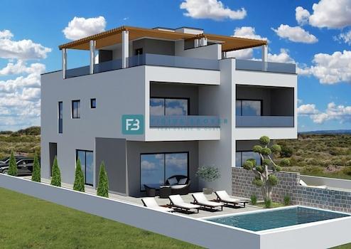 SRIMA, neue, möblierte Luxusvilla, 190 m zum Meer, Swimmingpool, Dachterrasse