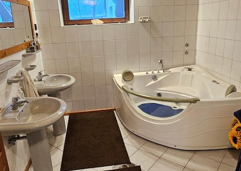 Das Haus ist für mehrere Generationen konzipiert und verfügt über ein Badezimmer mit einer Doppelmassagebadewanne, 2 Waschbecken, eine große Einbauküche, ein 42 qm großes helles Wohn- und Esszimmer, ein Kinderschlafzimmer, ein Badezimmer im Obergeschoss, 2 Schlafzimmer, einen Flur mit Einbauschränken und ein großes Spielzimmer.