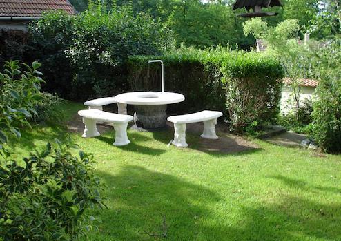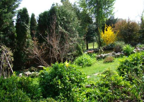 Der Garten ist 1342 qm groß und wunderschön angelegt, mit einem Gartenteich, exotischen Pflanzen, einem blühenden Ziergarten, großen Hecken, Zierbäumen, Ziergräsern, Büschen und Sträuchern. Der hintere Garten verfügt über alte Bäume, einen Gartenkamin und einen kleinen Weinkeller.