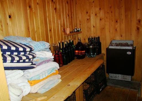 Das Nebengebäude ist teils Werkstatt, teils Fitnessraum. Hier finden Sie die Doppel-, Finnische und Infrarotsauna mit Dusche. Der lauschige Hintergarten bietet auch für eine größere Gruppe eine hervorragende Unterhaltungsmöglichkeit.