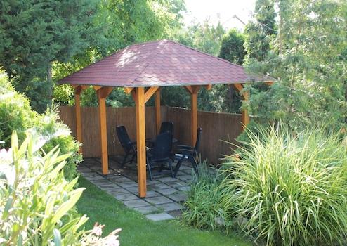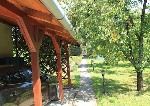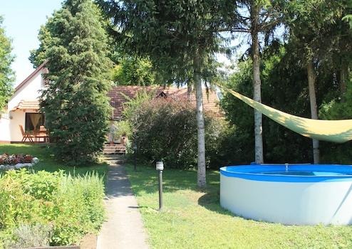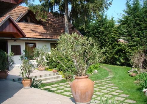 A kert 1342 nm szépen parkosított, kerti tóval, egzotikus növényekkel, virágos díszkerttel, nagyméretű sövényekkel, díszfákkal, díszfüvekkel, bokrokkal, cserjékkel. A hátsó kertben ősfák vannak, kerti tűzhellyel, kis boros pincével.