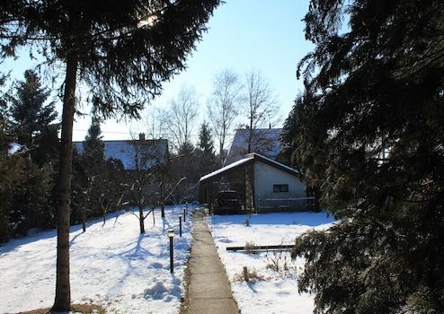 Das Haus liegt 60 Meter von der Straßenfront entfernt. Große umlaufende Terrasse auf der Südseite, Nebengebäude hinter dem Haus.