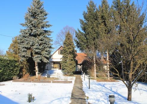 Gut besucht, modern, ruhig, SEHR leise, wunderschön, voller Vogelgezwitscher, in der Gartenvorstadt Pécel, in einer asphaltierten, ordentlichen Straße. Das Haus wurde im Jahr 2000 erbaut und sorgt mit seinem kontinuierlich modernisierten Porotherm-Mauerwerk und dem Wärmedämmputz außen für niedrige Heizkosten. Der jährliche Gasverbrauch einer vierköpfigen Familie lag in den letzten Jahren stets im Rahmen des vergünstigten Tarifs und auch in den Räumen des Hauses ist eine Heizung/Kühlung über Klimaanlagen möglich. Die untere Ebene verfügt über eine romantische Holzdecke mit Holzbalken, während die obere Ebene eine Holzvertäfelung aufweist. Im Wohnzimmer gibt es einen großen Marmorkamin, in den Gemeinschaftsräumen im Erdgeschoss ist eine Fußbodenheizung installiert, während im ersten Stock und in den Zimmern eine Radiatorheizung installiert ist. Alle Wohn- und Gemeinschaftsräume des Hauses wurden frisch gestrichen. Anschlüsse: 3 x 16 A Stromversorgung. Kabelfernsehen mit Breitband-Internet, Wasserzähler für das Haus, ertragreicher Bohrbrunnen zur Gartenbewässerung mit eingebauter Sprinkleranlage und Wasseranschlüssen. Der große Garten verfügt über großzügige, schattenspendende Bäume und einen Gartenteich mit Teichrosen. Das Haus und der große Garten liegen sehr ruhig und unverbaubar. Sehr ruhig, friedlich.