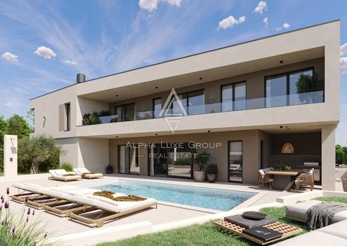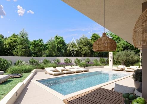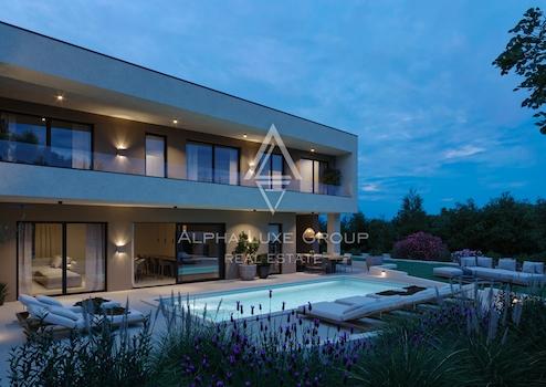 In einem ruhigen Wohnviertel von Rovinjsko Selo, nur zehn Minuten von der charmanten Stadt Rovinj entfernt, befindet sich diese elegante Luxusvilla, die höchste Privatsphäre und Wohnkomfort bietet. Als letztes Haus im Baugebiet, angrenzend an einen üppigen Wald, genießt sie völlige Abgeschiedenheit ohne direkte Nachbarn – ideal für alle, die Ruhe und Exklusivität suchen.