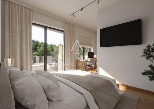 Am höchsten Punkt des Grundstücks befindet sich ein beheizter Swimmingpool mit 32 m², der ganzjährig nutzbar ist. Die Villa ist mit einer Fußbodenheizung über eine 8-kW-Wärmepumpe, Klimaanlagen in jedem Raum, Solarpaneelen mit einem 300-Liter-Boiler für Warmwasser sowie anthrazitfarbenen PVC-Fenstern mit elektrischen Rollläden und Insektenschutz ausgestattet. Zur hochwertigen Innenausstattung gehören begehbare Duschen, Geberit-Sanitärsysteme und maßgefertigte Innentüren. Alle Räume sind vorinstalliert für Satellitenfernsehen und WLAN. Das Garagentor ist per Fernbedienung oder Smartphone steuerbar.