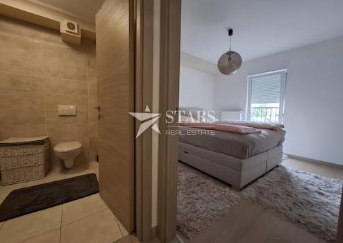 Die Wohnung besteht aus einem Eingangsbereich, einem geräumigen Wohnzimmer, das mit der Küche und dem Essbereich in einem offenen Konzept verbunden ist und Zugang zu einer Loggia bietet. Es gibt auch zwei Schlafzimmer mit französischen Balkonen und ein modernes Badezimmer. Das Interieur wurde sorgfältig gestaltet, um die perfekte Balance zwischen Funktionalität und Ästhetik zu erreichen, und alle Möbel sind im Preis inbegriffen.