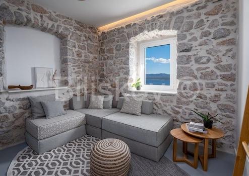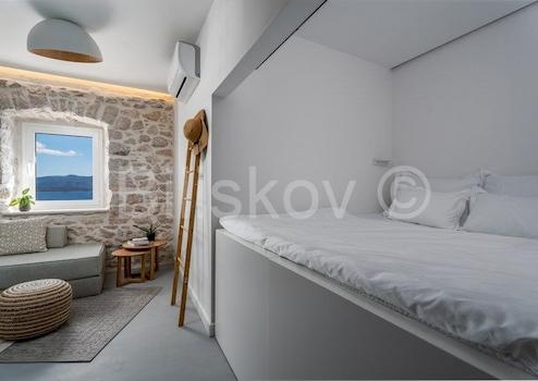 The apartment, along with the entire house, was completely renovated in 2023 and is a successful and well-established tourist rental. All apartment units are modernly decorated, integrated into the indigenous architecture and can be used throughout the year. The interior features smart design and top-notch finishing.From each floor there is a beautiful panoramic view of the island of Hvar.The configuration of the terrain ensures that such a view will remain unobstructed in the future.250 meters from the house there is a local beach, one of the most beautiful on the Adriatic.Public parking about 30 meters from the house.Energy certificate C.Ownership in order.