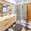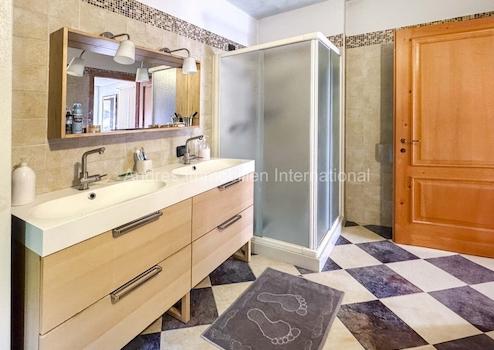 Zwei Badezimmer, die dem Schlafbereich dienen, wurden mit feinen Fliesen ausgestattet und bieten Komfort und Funktionalität.
