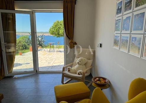 Eine Erdgeschosswohnung direkt über dem Meer mit spektakulärem Blick. Sie besteht aus zwei Apartments mit Schlafzimmern, einem Wohnzimmer und einer Terrasse auf der Südseite.