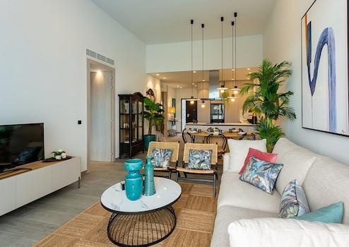 Die Ausstattung der Wohneinheiten beinhaltet unter anderem Klimaanlage, Fußbodenheizung und Duschtrennwände in den Badezimmern (Doppelhaushälften und Villen), Sicherheitstüren, Einbauküchen (ohne Elektrogeräte) und Einbauschränke in den Schlafzimmern. Zudem gibt es auf jedem Villen-Grundstück einen privaten Kfz-Stellplatz und einen Privatpool und in den Appartementblocks gibt es Tiefgaragenstellplätze mit Abstellräumen. Einige der Villen bieten auch einen Keller.