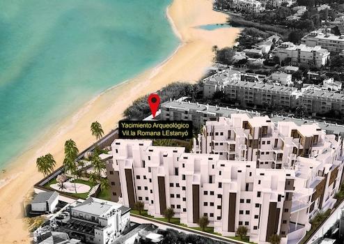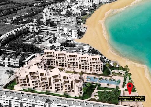 Residencial L`Estanyó besteht aus 100 modernen Wohnungen in einer privilegierten Umgebung, direkt an einem der am besten qualifizierten und angesehensten Strände Spaniens, mit erstklassigen Qualitäten und Meerblick, mit weitläufigen Grünflächen, Kinderspielplatz, Tiefgarage und angelegtem Gemeinschaftsschwimmbad für Erwachsene und Kinder.