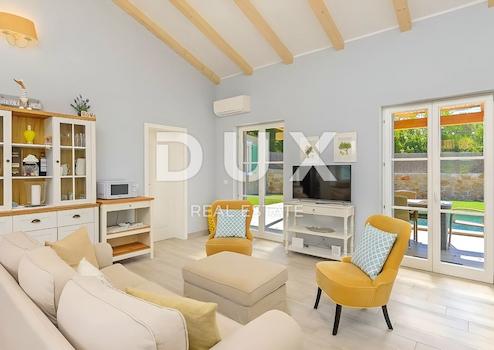 Die attraktivste und malerischste Stadt Istriens, Rovinj, deren Altstadtkern unter dem Schutz der UNESCO steht, ist eine ewige Inspiration für Romantiker und Künstler und eines der am weitesten entwickelten Touristenziele Kroatiens. Es liegt an der Westküste Istriens und ist mit einem stark gegliederten Archipel mit nicht weniger als 14 Inselchen und 6 Klippen entlang einer 67 Kilometer langen Küste geschmückt, das ein geschütztes Naturerbe ist. Die wunderschöne zerklüftete Küste, das spezifisch milde mediterrane Mikroklima, das ausgezeichnete gastronomische Angebot, das ganze Jahr über kulturelle Veranstaltungen und freundliche und nette Gastgeber machen diese kleine Stadt zauberhaft. In der Nähe der Stadt Rovinj steht ein Haus mit Swimmingpool zum Verkauf. Die Mikrolage bietet das authentische Erlebnis einer kleinen istrischen Stadt, Intimität, Erleichterung von jeder Hektik und eine Pause vom Lärm, während sie gleichzeitig nahe genug an den dynamischen Städten Istriens mit einer Reihe von Annehmlichkeiten liegt. Neben der verkehrsgünstigen Lage zeichnet sich das Objekt auch durch die Bauqualität aus, die langfristige Zufriedenheit und Wohnqualität garantiert. Das Haus fügt sich mit seinem zeitlosen Design und Charme in Form und Farbe in die Siedlung und Landschaft ein und ist als geschmackvoll eingerichtete und gut ausgestattete Wohneinheit mit 90 m² konzipiert. Es besteht aus einem offenen Raumkonzept, das Küche, Esszimmer und Wohnzimmer mit Zugang zu einer mit einer Pergola überdachten Terrasse vereint, zwei Schlafzimmern und zwei Badezimmern. Neben dem Haus befindet sich ein Nebengebäude von 15 m², bestehend aus einem Schlafzimmer und einem Badezimmer. Der Garten ist angelegt und eingezäunt und die perfekte Harmonie wird durch einen 24 m² großen Swimmingpool mit Liegewiese ergänzt. Die hervorragende Lage und die räumliche Aufteilung des Innen- und Außenbereichs dieser Immobilie bieten die Möglichkeit für ein komfortables Familienleben oder eine Investition in ein touristisches Vermietungsgeschäft.