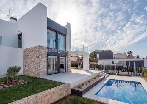 Die exklusive Wohnanlage in der Gemeinde Colonia Sant Pere umfasst freistehende Villen. Die Häuser bieten in der Erdgeschoss-Ebene einen großen, repräsentativen Wohn-/Essbereich, offene Küche mit HWR, Master-Schlafzimmer mit Bad und eine sehr große, teilüberdachte Terrasse. Das Obergeschoss offeriert 2 Schlafzimmer jeweils mit eigenen Bädern sowie eine Balkonterrasse. Auf der großen Dachterrasse können Sie ebenfalls das herrliche Klima und die Sonne Mallorcas genießen. Außerdem verfügen Sie über ein Kellergeschoss mit Technikraum und Wasserspeichern. Die Häuser bieten einen eigenen Garten, einen privaten Swimmingpool und einen überdachten Stellplatz.