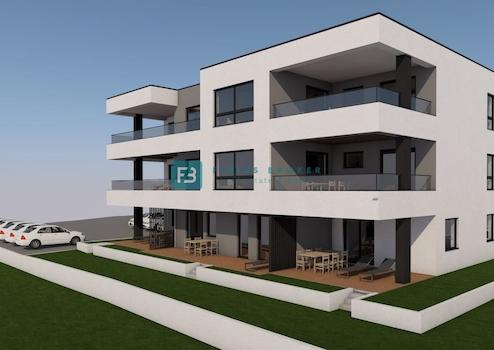VODICE – Moderne Wohnung mit Terrasse und Panoramablick auf das Meer in ruhiger Lage, 1500 m vom Strand und 1000 m vom Stadtzentrum entfernt!