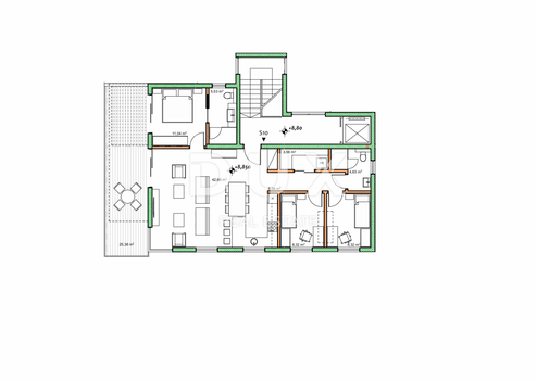 Die Wohnung umfasst 109,45 m2 netto + eine Terrasse von 12,70 m2 netto (25,40 m2 brutto) und bietet einen bezaubernden Panoramablick auf das Meer und die mittelalterliche Stadt Buje. Mit besonderem Schwerpunkt auf Komfort und Funktionalität wurde der Raum sorgfältig gestaltet, um den höchsten ästhetischen und technischen Standards zu entsprechen.