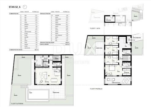 RIJEKA, KOSTRENA – exklusive Maisonette-Wohnung 209,14 m2 Neubau mit wunderschönem Meerblick und Swimmingpool + Garten 356,39 m2 – S2-A
