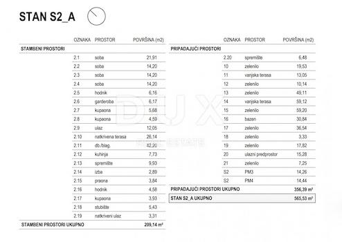 RIJEKA, KOSTRENA – exklusive zweistöckige Wohnung 209,14 m2, Neubau mit wunderschönem Blick auf das Meer und Swimmingpool + Garten 356,39 m2 – S2-A