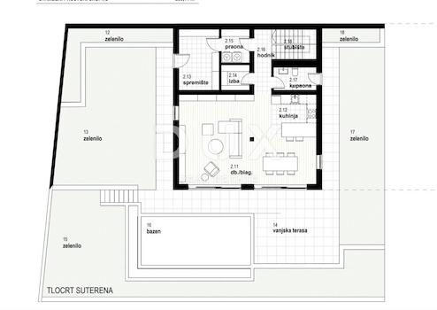 Wir bieten Ihnen eine Immobilie, die Ihnen modernes Design und Eleganz, Komfort und erstklassige Ausstattung bietet und sich in einer schönen, ruhigen Lage in der Nähe von öffentlichen Verkehrsmitteln, Schulen, Kindergärten, Einkaufszentren und zehn Autominuten von Rijeka befindet. Der Komplex aus 4 Wohnhäusern mit insgesamt 8 Wohnungen liegt nördlich der Adria-Autobahn im Gebiet „Zelena Kostrena“ von wo aus sich ein wunderschöner Ausblick auf die gesamte Kvarner Bucht bietet. In unmittelbarer Nähe gibt es 10 Kilometer gepflegte Wander-, Rad- und Fitnesswege, die durch die höchsten Teile von Kostrena vom Gipfel Solin bis zum Gipfel Sopalj führen. Die Zufahrt zu den Häusern erfolgt über die obere Straße, wobei eine Verbesserung und Erweiterung der bestehenden Straße geplant ist. Zu jedem Haus gehören vier Außenstellplätze, das heißt zwei Stellplätze pro Wohneinheit. Jedes Haus besteht aus zwei Wohnungen. Dabei liegen die Wohnungen der oberen beiden Grundstücke übereinander, während die Wohnungen der unteren beiden Grundstücke nebeneinander liegen. Zu jeder Wohnung gehört ein Gartenanteil. HAUS A Wohnung S2 - A: WOHNFLÄCHEN: - Zimmer 21.91 - Zimmer 14.20 - Zimmer 14.20 - Zimmer 14.20 - Flur 6.16 - Garderobe 6.17 - Badezimmer 5.68 - Badezimmer 4.59 - Eingang 12.05 - überdachte Terrasse 26.14 - Wohnzimmer / Esszimmer 42.20 - Küche 7.73 - Abstellraum 9.93 - Schrank 2.89 - Waschküche 3.84 - Flur 4.58 - Badezimmer 3.93 - Treppenhaus 5.43 - überdachter Eingang 3.31 WOHNFLÄCHEN GESAMT (m2): 209.14 m² NEBENFLÄCHEN: - Abstellraum 6.48 - Grünfläche 19.53 - Außenterrasse 13.05 - Grünfläche 10.14 - Grünfläche 49,11 - Außenterrasse 59,12 - Grünfläche 59,20 - Swimmingpool 30,84 - Grünfläche 36,54 - Grünfläche 3,33 - Grünfläche 17,82 - Eingangshalle 15,28 - Grünfläche 7,25 - Stellplatz 3 14,26 - Stellplatz 4 14,44 ZUGEWIESENE PLÄTZE GESAMT: 356,39 m² WOHNUNG S2-A GESAMTFLÄCHE: 565,53 m² Diese luxuriöse Wohnung ist auf maximalen Komfort ausgelegt. AUSSTATTUNG: Das Haus, in dem sich die Wohnung befindet, ist gut gebaut und luxuriös ausgestattet, alle eingebauten Materialien, Boden- und Wandbeläge entsprechen den höchsten Standards. - 10 cm dicke Fassadendämmung - Fußbodenheizung - Wärmepumpen - hochwertige Aluminium-Tischlerei. Zur Wohnung gehört ein eigener Garten und 2 PKW-Stellplätze. PREIS: Der angegebene Preis bezieht sich auf eine komplett fertiggestellte schlüsselfertige Anlage, ohne Möblierung. Der Preis beinhaltet die gesetzliche Mehrwertsteuer, der Käufer ist von der Zahlung der Grundsteuer befreit. Bei einem Kauf von einem in Kroatien registrierten Unternehmen ist nach dem Verkauf eine volle Mehrwertsteuerrückerstattung möglich. Sauberes und ordentliches Anwesen. Sicherlich eine wunderschöne Immobilie für luxuriöses Familienleben, aber auch als Investition in Form von Elitetourismus geeignet. EINZIGARTIGES ANWESEN, DAS IHRE AUFMERKSAMKEIT UNBEDINGT WERT IST UND IN EINER TOLLEN LAGE LIEGT!!! KOSTRENA Kostrena ist eine alte, beliebte Küstenstadt, die erstmals zu Beginn des 15. Jahrhunderts erwähnt wurde. Im Jahr 1874 erlangte die Stadt erstmals ihre kommunale Unabhängigkeit, die sie jedoch nur für sehr kurze Zeit, nämlich nur zwei Jahre, behielt. Es ist in zwei Teile gegliedert, St. Lucia und St. Barbara, nach den Namen zweier Kirchen, die es in dieser Gegend gibt. Kostrena liegt in unmittelbarer Nähe der Stadt Rijeka, eingerahmt von der Bucht Martinšćica und der Bucht von Bakar. Die Halbinsel Kostrena ist etwa 10 Kilometer lang und fällt sanft zur Küste hin ab. Auf seiner gesamten Länge gibt es wunderschöne Strände, die im Sommer von Tausenden von Badegästen besucht werden. Die bekanntesten und am meisten besuchten sind jene in der Bucht von Žurkovo, gefolgt von Smokvinovo, Svežanj, Spužvina, Podražica, Nova voda und Perilo. Kostrena besteht aus etwa zwanzig Siedlungen, von denen viele nach Familien benannt wurden. Die bevölkerungsreichsten Orte sind heute Vrh Martinšćice, Glavani und Sv. Lucija, Rožmanići, Doričići und Paveki. Ein charakteristisches Karstgebiet mit mediterraner Vegetation und der berühmten Kostrena-Grotte sowie ein mildes Klima, das manchmal starken Bora-Böen weicht, sind die Merkmale dieser Region.