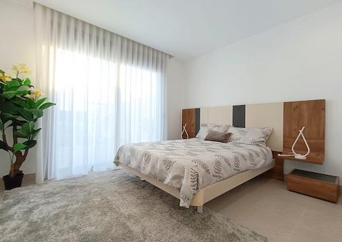 Alle Wohneinheiten verfügen über Fenster mit Doppelverglasung, großzügige Wohnzimmer mit offenen Küchen, moderne Einbauküchen, Klimaanlage, Dachterrassen und Einbauschränke in den Schlafzimmern. Darüber hinaus gibt es einen Kfz-Stellplatz und einen Privatpool auf dem jeweiligen Grundstück und einige Villen bieten auch einen Keller.