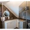Die obere Ebene bietet mit 50 m² Wohnfläche zwei weitere Schlafzimmer, eine großzügige Wohnküche und ein geschmackvolles Badezimmer. Von hier aus betreten wir einen der zauberhaftesten Orte des Hauses, den gemütlichen Balkon mit Caféterrasse, von dem sich vor uns ein atemberaubendes Panorama der Donau entfaltet – ein Anblick, der jedes Mal für ein unvergessliches Erlebnis sorgt.