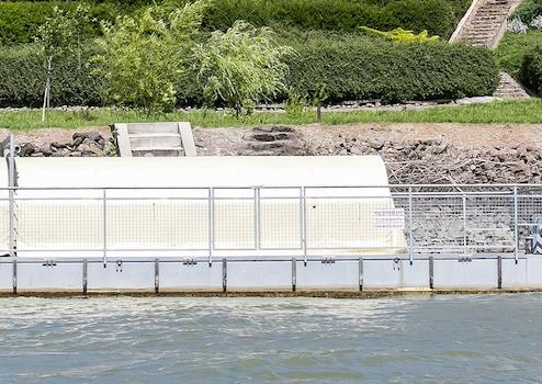 Az ingatlanhoz tartozik továbbá a saját partszakaszról automata, önellátós pontonhídon keresztül megközelíthető, összesen kb. 70-75 m2 alapterületű, egy katamarán típusú 6 személyes motoros hajó befogadására alkalmas ponton és csónakház. A Duna vízszintjének változásai esetén a pontonhíd automatikusan önállító, így minden vízállás mellett száraz lábbal lehet a partra lépni. Továbbá egy Yamaha motorral felszerelt, mindössze 37 üzemórás katamarán, amely a Duna vízi világát nyitja meg új dimenziókban.