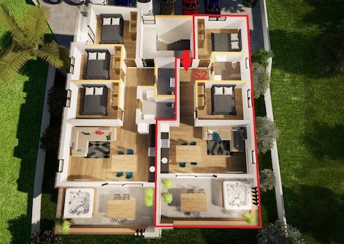 Das Gebäude ist sehr gut gebaut. Porotherm-Ziegel, Wasser- und Wärmedämmung, einbruchhemmende Eingangstür, Fußbodenheizung im Bad- und Wohnbereich, Qualitätsfenster und -türen mit Insektenschutz und elektrischen Rollläden, sparsame und leise Inverter-Klimaanlagen in allen Räumen, geprüfte Boden- und Wandkeramikfliesen, moderne Sanitäranlagen.