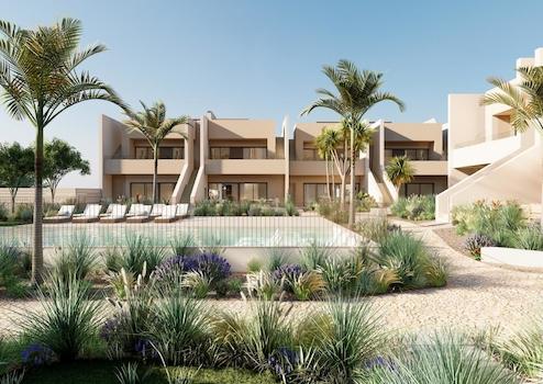 NEU GEBAUTE BUNGALOWS IN RODA GOLF~~Die neue Wohnanlage befindet sich auf einem nach Süden ausgerichteten Grundstück im renommierten Roda Golf & Beach Resort, das an den Golfplatz mit seinen gepflegten Fairways und Seen grenzt.~Dieser wunderschöne Komplex besteht aus 37 geräumigen Häusern, die einen herrlichen Pool und Gemeinschaftsgärten umgeben.~~Diese moderne Wohnanlage bietet eine Reihe von Immobilientypen, Aussichten und Ausrichtungen, je nach Ihren Bedürfnissen. Alle Bungalow-Wohnungen verfügen über 3 Doppelschlafzimmer, 2 Bäder, ein helles und geräumiges offenes Wohn-Esszimmer mit amerikanischer Küche und einen fantastischen Außenbereich. Alle Bungalows verfügen über einen Parkplatz abseits der Straße und einen privaten Abstellraum.~~Die 18 Bungalows im Erdgeschoss verfügen über eine Innenterrasse und einen Garten, die zu den Gemeinschaftsgärten und dem Poolbereich führen, sowie über eine große, eingezäunte Terrasse und einen Garten auf der Rückseite.~Die 18 Penthäuser verfügen über einen vorderen Balkon vor dem Wohnzimmer sowie über eine fantastische, 90 m2 große private Dachterrasse mit Sommerküche.~~Die Wohnanlage wurde so konzipiert, dass Raum und Licht optimal genutzt werden. Dieses exklusive Angebot ist eine echte Oase an der spanischen Costa Calida, hervorragend gebaut und mit einer Vielzahl von Extras ausgestattet.~~~Das Herzstück der Anlage ist ein herrlicher Gemeinschaftspool, der von mediterraner Vegetation umgeben ist. Dank seiner Südausrichtung genießt er den ganzen Tag über die Sonne und ist der perfekte Ort, um zu schwimmen, zu entspannen und die Sonne Murcias aufzusaugen.~~Die Wohnungen im Erdgeschoss verfügen nicht nur über einen fantastischen Innenraum, sondern auch über eine schöne vordere Terrasse und einen zusätzlichen privaten Garten, der in das Innere der Wohnanlage mit ihren herrlichen Gemeinschaftsgärten und dem Poolbereich führt.~~Darüber hinaus bieten sie eine hintere Terrasse und einen eingezäunten Garten für maximale Privatsphäre, mit einem Tor, das zum Außenbereich der Urbanisation führt. Die doppelte Ausrichtung sorgt dafür, dass die Häuser den ganzen Tag über Sonne und Schatten genießen.~~~Ein wunderschön gepflegter, von Dave Thomas entworfener 18-Loch-Platz mit Seen, strategisch platzierten Bunkern, hügeligen Grüns und üppiger mediterraner Vegetation. Ein privates Resort mit 24-Stunden-Sicherheitsdienst, eigenem Taxistand, einem beeindruckenden Clubhaus mit A-la-carte-Restaurant, Fitnessraum mit Seeblick und Sportbereich. Und das alles nur einen Spaziergang oder eine Radtour entfernt von den Stränden und dem ruhigen Wasser der Binnenlagune Mar Menor.~~Diese Wohnanlage hat eine fantastische Auswahl an goldenen Sandstränden vor der Haustür und bietet eine breite Palette an Wassersportmöglichkeiten. Genießen Sie sowohl das Mar Menor als auch das Mittelmeer von diesem Paradies an der Küste Murcias aus.