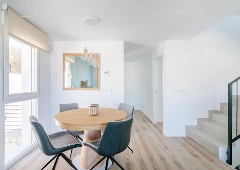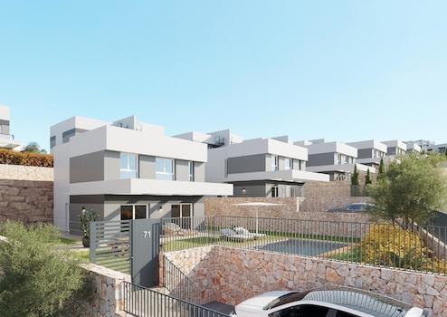 NEU GEBAUTE VILLEN IN FINESTRAT~~Neubau von unabhängigen Villen und Doppelhaushälften in Balcon de Finestrat.~~Wunderschöne Villen mit 4 Schlafzimmern, 3 Bädern, offener Küche mit Wohnbereich, Einbauschränken, privatem Garten mit Pool und Parkplatz.~Installation von Kanal-Klimaanlage (warm/kalt).~~Die Wohnanlage verfügt über einen Gemeinschaftspool für Erwachsene mit Kinderbecken und Sonnenterrasse, Abstellplatz für Fahrräder, Kinderspielplatz mit durchgehendem Sicherheitspflaster gefliest.~~~Die Wohnanlage liegt perfekt in einer natürlichen Enklave der Costa Blanca und bietet einen unglaublichen Blick auf die Skyline von Benidorm, die Bucht von Finestrat und El Puig Campana.~~Benidorm ist nur fünf Autominuten von den Immobilien entfernt und bietet alle Dienstleistungen, die Sie benötigen, einschließlich Geschäfte, Bars, Restaurants, Supermärkte, Banken, Apotheken und mehrere private internationale Schulen.~~In der Nähe befinden sich die Strände von Levante, Poniente und Cala de Finestrat, die mit einer Länge von mehr als 6 km zu den besten in Europa gehören und von der Europäischen Union mit der Blauen Flagge ausgezeichnet wurden.~~Alle Freizeitangebote wie die Themenparks Aqua Natura, Terra Mítica, Terra Natura, Aqualandia und Mundomar, die Golfplätze Sierra Cortina und Villaitana, Wandern und Klettern auf dem Puig Campana in einer unvergleichlichen natürlichen Umgebung oder Wassersport.~~Entfernung zum Meer 4 km, zum Flughafen 26 km und zum Golfplatz 1km.~~Der Komplex liegt 40 Minuten vom Flughafen Alicante entfernt.